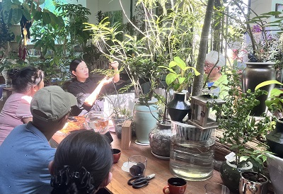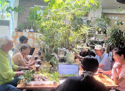 干净便捷的鱼植共生水培小盆景,在炎热的夏季孕育出"鱼粪供养植物、植物净化水质"的生态循环机制,目前市场上较受欢迎。花间青舍园艺讲师刘米云科普了水培技术的基础知识和实操技巧,并深入讲解了鱼类与水培植物共生的微型盆景的制作技巧,耐心地教热爱绿化的市民朋友们一步步制作。市民们认真聆听,制作出一盆盆灵动的鱼植共生水培小盆景,现场提问络绎不绝,气氛热烈活跃。